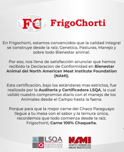 InicioDestacadasFrigoChorti certifica su compromiso con el bienestar animal y la calidad chaqueña